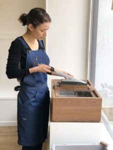 A l’atelier DOMA dans le 12ème arrondissement de Paris, elle propose également des services d’affûtage et une sélection très pointue de pierres d’affûtage et couteaux japonais d’exception.